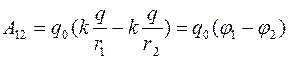 Работа А при перемещении заряда q0 вдоль траектории от точки 1 до точки 2: