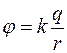 Напряжённость электростатического поля, создаваемого точечным зарядом q в любой точке поля, находящейся на расстоянии r от этого заряда:
