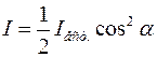Так как интенсивность естественного света, прошедшего первый поляризатор уменьшается вдвое по отношению к падающему свету на первый поляризатор, то интенсивность света, прошедшего через два поляризатора: