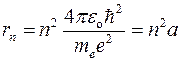 Радиус n-ой орбиты для атома водорода: