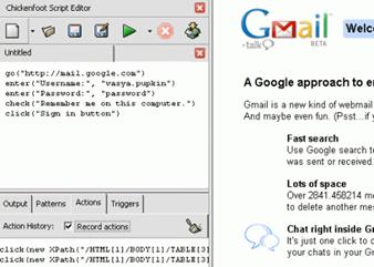 Это расширение, которое встраивает минисреду программирования на боковой панели, так что вы сможете писать простенькие скрипты чтобы управлять страницами и автоматизировать процесс веб-браузинга. Скрипты в Chickenfoot это обычные JavaScript с рядом дополнительных функций, заточенных под веб-задачи (открыть урл, ввести строку в input, кликнуть по кнопке и много других).