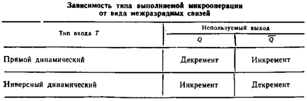 Из таблицы и временных диаграмм следует, что для организации микрооперации инкремента переключение каждого последующего триггера должно происходить в момент изменения выходного сигнала предыдущего триггера из 1 в 0, т.е. по срезу импульса.