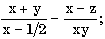 а) (x+y)/(x-1/2)-(x-z)/(x*y);б) (1+z)*(x+y/z)/(a-1/(1+x*x));в) x**(n*(m+2)) + x**(n**m);г) (a+b)**n/(1+a/(a**m-b**(m-n)));д) (a[i]**(2*l) + b[j+1]**(2*k)) * (3**n-x*x*y)/(z-(d[i,j+1]+1)/(z+ y/sqrt(t*t+x*y*z)));е) sqrt(abs(sin(x)**2))/(3.01*x - exp(2*x));ж) abs(cos(x**3) - sin(y)**2) / (abs(ln(x))**(1/4) + x*y);з) ln(y**(-sqrt(abs(x+1)))) * sin(arctg(z))**2;и) r[i,j]**abs(x-y) - 0.15*abs(sin(exp(-z**8)));к) a**((x+y)/2) - ((x-1)/(abs(y)+1))**(1/3)*exp(-(y+u/2)).7.2. а)