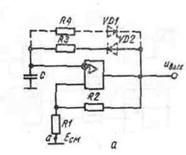 Значение минимального е определяется разбросом номиналов резисторов R1 и R2 и входного сопротивления Rвх ОУ .