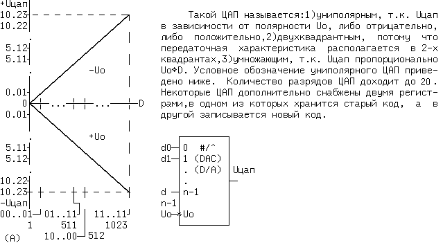 На рисунке внизу показано применение униполярного ЦАП для формирования пилообразного напряжения.
