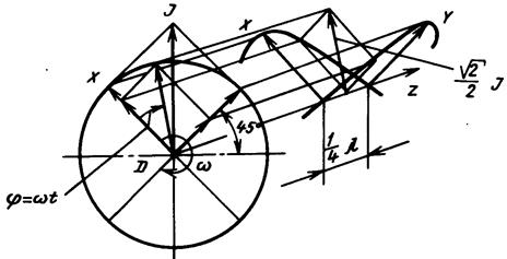вследствие сдвига фаз будет уже пространственное; конец светового вектора будет описывать в направлении