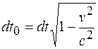- перемещение тела, а dt - промежуток времени в системе отсчета, относительно которой движется тело. Этот промежуток времени не является инвариантом, и, чтобы закон сохранения импульса был инвариантным по отношению к преобразованиям Лоренца, время движения должно быть измерено в собственной системе отсчета, в которой тело покоится. Промежуток собственного времени