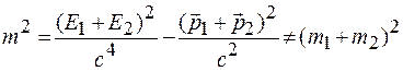 Это происходит вследствие того, что суммарная масса зависит от угла между векторами импульсов