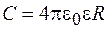 Следовательно, электроемкость проводника - это физическая величина, численно равная отношению заряда проводника к его потенциалу. Важно понимать, что от заряда и потенциала емкость проводника не зависит, ибо при изменении заряда потенциал изменяется во столько же раз. Чтобы установить, от чего зависит емкость, получим и проанализируем выражение для емкости проводящего шара. Потенциал шара, находящегося в среде с диэлектрической проницаемостью e, вычисляется по формуле (33.4).