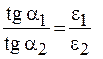 Из формулы (48.8) следует, что в среде с большей диэлектрической проницаемостью линии напряженности составляют больший угол с перпендикуляром к границе раздела.