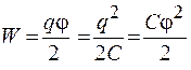 Запишем формулы энергии заряженного конденсатора (5.4–5.6) в одной строке: