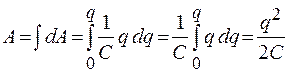 Полная работа зарядки конденсатора соответствует изменению заряда от 0 до q. Поэтому