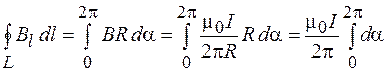 направлен по касательной и одинаков по модулю, а циркуляция вектора магнитной индукции равна