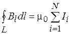 Циркуляция вектора магнитной индукции равна произведению магнитной постоянной на алгебраическую сумму токов, охватываемых контуром.