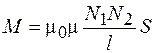 Отсюда видно, что М зависит от размеров сердечника, числа витков катушек и магнитной проницаемости среды.