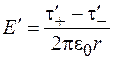 есть коэффициент, на который увеличивается линейная плотность зарядов по сравнению с плотностью в системе покоя положительных зарядов. Таким образом, линейная плотность положительных зарядов в си-стеме частицы должна быть равна