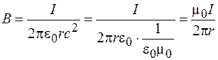Мы получили формулу для магнитного поля прямого тока, исследуя только электрическое поле движущихся зарядов. Вывод немного несовершенен, но сама зависимость налицо.