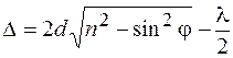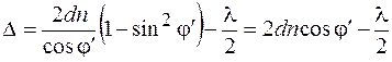 Если оптическая разность хода (47.3) равна целому числу длин волн, то в результате интерференции интенсивность отраженного излучения будет иметь максимальное значение. В случае если
