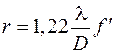 Поскольку геометрическая оптика не учитывает волновые эффекты, связанные с конечностью длины волны, то она дает лишь приблизительное описание распространения электромагнитных волн. Так, плоская волна, проходя через линзу, не будет фокусироваться в одной точке, как показано на рисунке 64.1. В результате дифракции на круглой оправе линзы в ее фокусе получится дифракционная картина, как на рисунке 56.1. В соответствии с формулой (56.1) радиус центрального светлого пятна (пятна Эйри)
