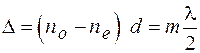 соответствует оптическая разность хода обыкновенного и необыкновенного лучей