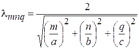 соответствуют числу полуволн, укладывающихся вдоль соответствующей стороны резонатора. Простейшим типом колебаний является волна, для которой два индекса равны единице, а третий – нулю.