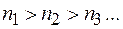 (рис. 82.2). Луч света в результате преломления на границах слоев будет иметь вид ломанной. Если толщина слоев стремится к нулю, то в пределе получим среду с плавно меняющимся показателем преломления. Луч света, проходя через такую среду, будет плавно отклоняться в область с большим показателем преломления.