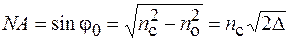 Выражение (82.3) определяет синус предельного угла падения излучения на входной торец световода, при котором это излучение будет доходить до выходного торца. Эта важная характеристика световода называется числовой апертурой и обозначается как