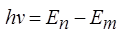 3. Любое испускание или поглощение энергии атомов происходит при переходе атома из одного стационарного состояния в другое. При переходе атома из стационарного состояния с энергией En в состояние с энергией Em излучается или поглощается квант, частота которого определяется уравнением: