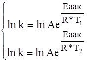 Для того, чтобы для даннной реакции определить А и Еакт достаточно определить константу скорости при 2-х разных температурах.