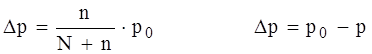 p0 – давление насыщенного пара над растворителем (например вода), p - давление насыщенного пара над раствором, n – количество растворенного вещества, N – количество растворителя.