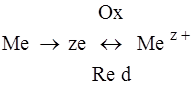 С течением времени в такой системе устанавливается равновесие между окислительной и восстановительной формой металла. Этому состоянию будет соответствовать определённое значение разности потенциалов между металлической пластиной и прилегающим слоем электролита.