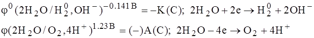Молекулы воды могут окисляться и восстанавливаться, следовательно, на катоде и аноде конкурируют реакции восстановления и окисления катионов и анионов и молекул воды.