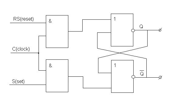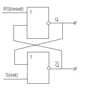 Асинхронные RS-триггеры выполняются или на элементах «ИЛИ-НЕ» или на элементах «И-НЕ», причем во внутренней логической схеме триггера должны присутствовать по 2 логических элемента, охваченных 100%-ми перекрестными обратными связями.