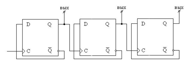 З-ех разрядный суммирующий счетчик с последовательным переносом.