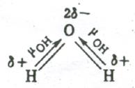 Напротив, в угловой молекуле Н2О полярные связи О–Н располагаются под углом 104,5º. Поэтому их моменты взаимно не компенсируются и молекула оказывается полярной (
