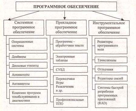 Третья составляющая информатики — программное обеспечение — неоднородна и имеет сложную структуру, включающую несколько уровней: системный, служебный, инструментальный, прикладной.