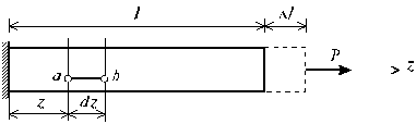 Если же по длине стержня возникает неоднородное напряженное состояние, то для определения его абсолютного удлинения необходимо рассмотреть бесконечно малый элемент длиной dz (рис. 2.8). При растяжении он увеличит свою длину на величину
