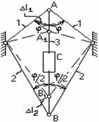 За счет ввинчивания стержня 3 точки А и В сблизятся на величину