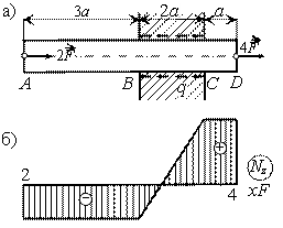 . На участке CD продольная сила постоянна и равна NСD = 4F.