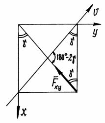 Нетрудно убедиться, что проекции сил на ось V равны: