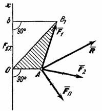 , сходящихся в точке А (рис.21). Возьмем произвольный центр О и проведем через него ось Ох, перпендикулярную к прямой ОА; положительное направление оси Ох выбираем так, чтобы знак проекции любой из сил на эту ось совпадал со знаком ее момента относительно центра О.