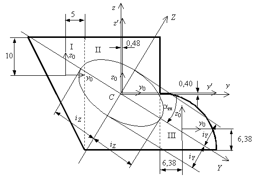 по часовой стрелке и проводим главные центральные оси инерции Y, Z (см. рис. 2). Вычислим моменты инерции относительно этих осей по формуле