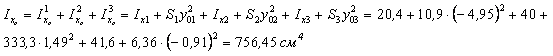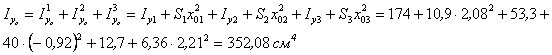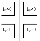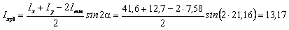 Знак центробежного момента инерции для угловой прокатной стали определяется согласно рис. 2, поэтому Ixy3 = -13,17 см4.