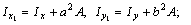а1 = у1 – ус = 24,8 – 17,5 = 7,3 см; b1 = х1 – хс = 25 – 27,4 = –2,4 см;