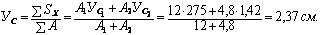 Наносим эти размеры на чертеж и через полученный центр тяжести С проводим центральные оси Xc и Yc. Проверяем правильность вычислений: центр тяжести составного сечения должен лежать на линии, соединяющей центры тяжести первого и второго сечений.