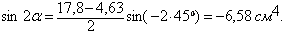 = (0 + 0,38×(–1,83)×12) + (– 6,58 + (– 0,95)×4,59×4,8) = (– 8,34) + (– 27,5) = – 35,8 см4. (4)