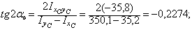 4. Определим направление главных центральных осей на основании вычислений по формулам (2), (3) и (4):