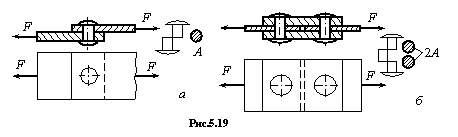 заклепках в соединении, изображенном на рис.5.16, на каждую из них действуют по две равные и противоположные силы