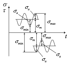 Совокупность последовательных значений напряжений за один период их изменения при регулярном нагружении (рис.1.1) называется циклом напряжений.
