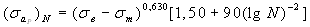 Статистический анализ показал, что уравнения (2.54) и (2.55) при отсутствии систематической ошибки обеспечивают оценку предельной амплитуды цикла для указанных выше долговечностей с относительной средней квадратической ошибкой, равной